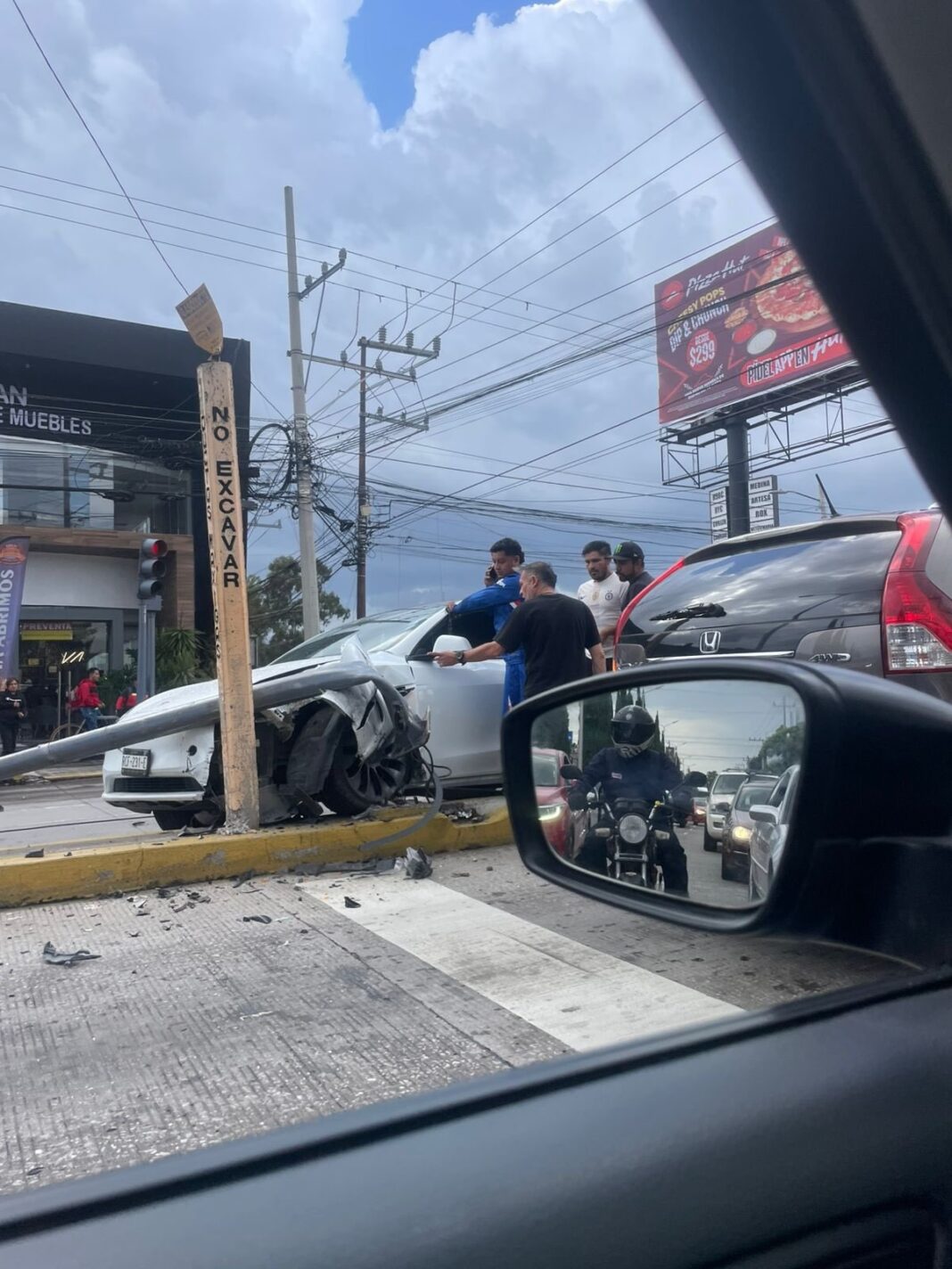 El incidente, que ocurrió con dirección hacia Angelópolis, involucró a un automóvil Tesla, el cual impactó una de las estructuras semafóricas, dejándola fuera de servicio y afectando la circulación.
