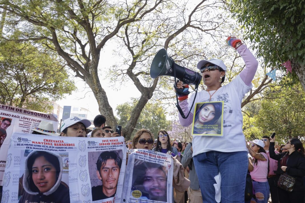 Posteriormente, el contingente comenzó su recorrido por el Bulevar 5 de Mayo con destino al Zócalo de Puebla, levantando voz y haciéndose escuchar con la consigna de que las “mujeres desaparecidas no son un hecho aislado” familiares de víctimas de ese delito, como madres, hermanas, tías, abuelas, algunas vestidas con playeras blancas, moradas y rosas, caminaron por dicha avenida.