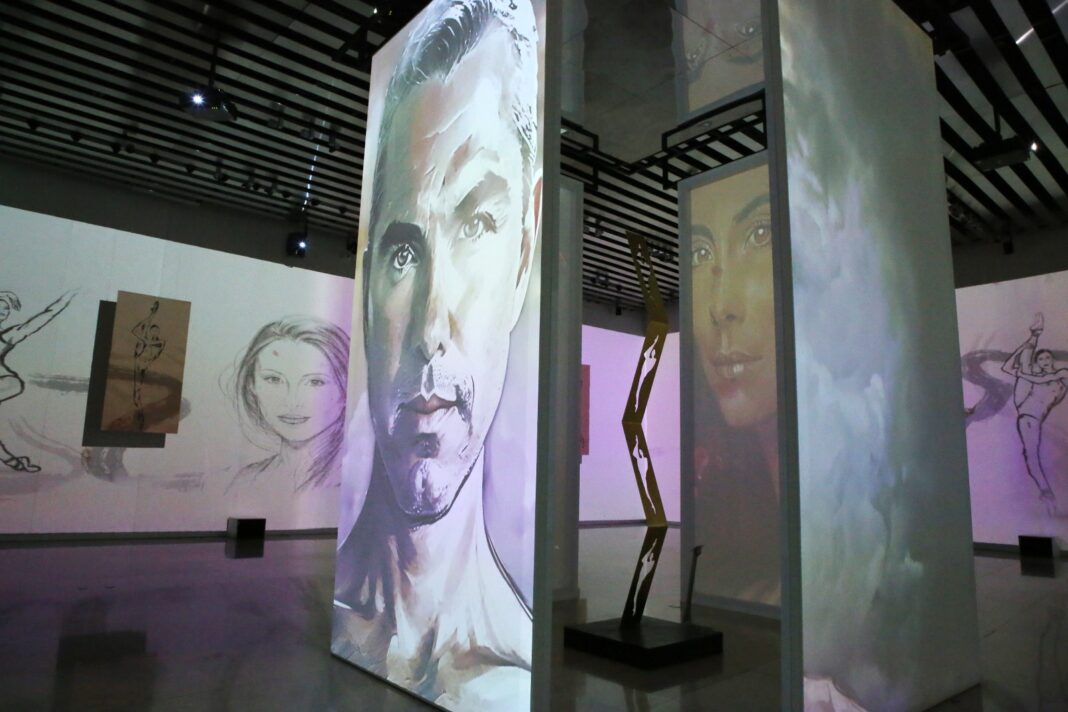 La muestra, que rinde homenaje a la trayectoria y al impacto de Elisa Carrillo, presenta 60 obras entre pinturas y esculturas. Los visitantes pueden apreciar las obras desde la entrada del museo hasta una sala inmersiva que incluye una proyección de video combinada con ballet y música, así como una galería de pinturas.