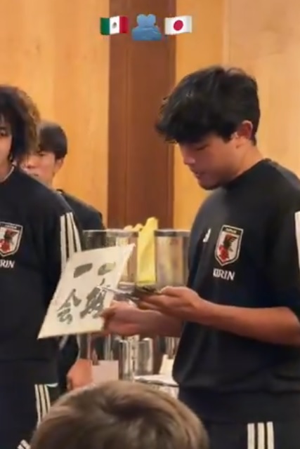 “Felicidades por ganar en dieciseisavos, estamos orgullosos de ustedes y de México. Tenemos un póster para celebrar esta amistad; les deseamos buen viaje y éxito en lo que venga. ¡Viva México y viva Japón!”, expresó el jugador.