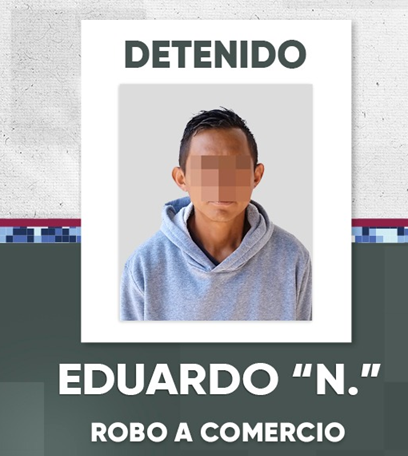 Policía Municipal detiene a Eduardo N presunto responsable de robo a comercio