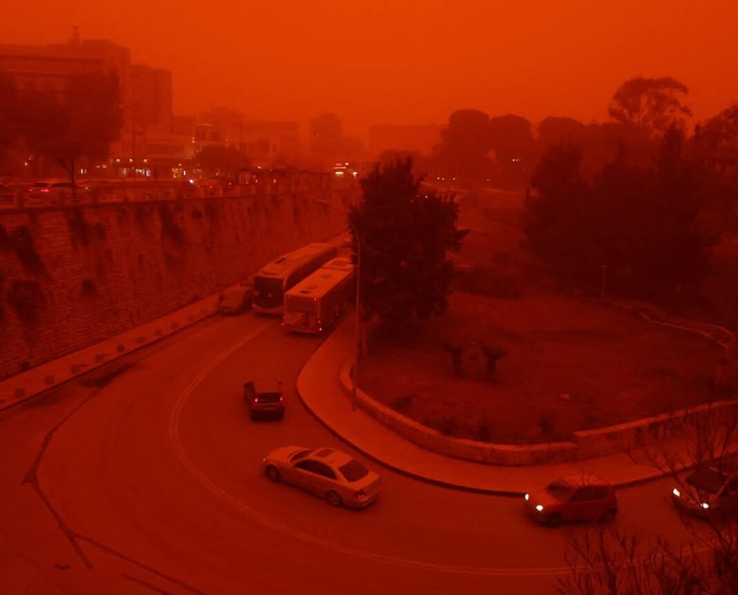 Una densa nube de polvo procedente del desierto del Sahara alcanzó territorio griego este miércoles, cubriendo la isla de Creta y diversas zonas del sur del país. El fenómeno meteorológico ha modificado la visibilidad en la región, tiñendo el cielo de tonalidades rojizas y anaranjadas, lo que ha generado una acumulación inusual de partículas en suspensión en la atmósfera.