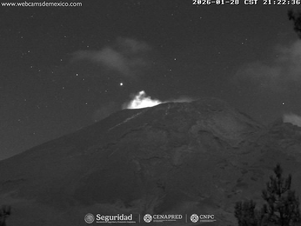 Durante las últimas 24 horas, el volcán Popocatépetl registró 24 exhalaciones de baja intensidad, acompañadas de ligeras emisiones de vapor de agua, gases volcánicos y pequeñas cantidades de ceniza. Asimismo, se detectaron cuatro minutos de tremor de baja a media amplitud y de alta frecuencia, como parte del monitoreo continuo del coloso.