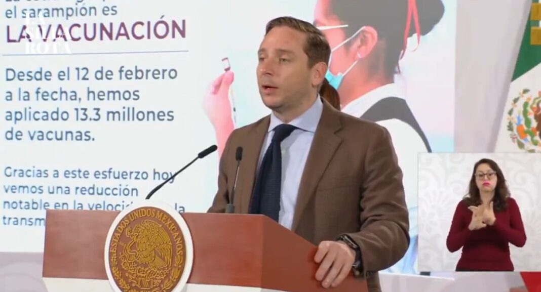 El subsecretario de Integración y Desarrollo del Sector Salud, Eduardo Clark, informó que desde el inicio de la estrategia nacional de vacunación el pasado 12 de febrero se han aplicado 13.3 millones de dosis contra el sarampión.
