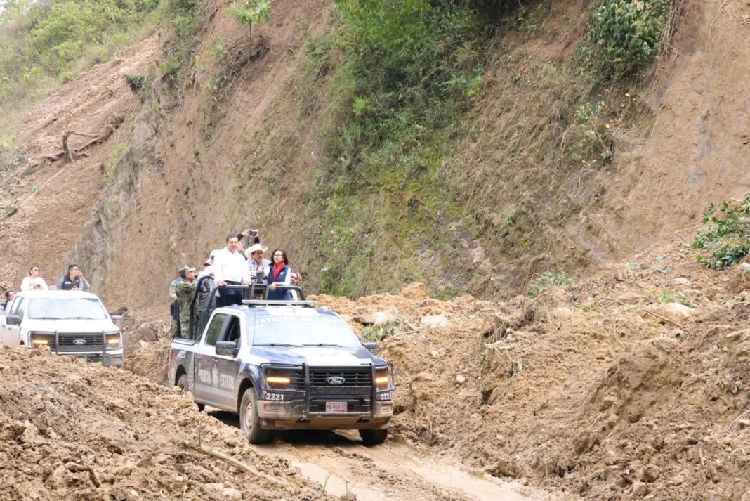 Durante su visita, el mandatario estuvo acompañado por Leticia Ramírez Amaya, funcionaria del Gobierno de México, con quien supervisó los daños y anunció que se trabaja ya en una solución provisional: un puente colgante peatonal que permita reconectar a las comunidades mientras se avanza en la rehabilitación de la vía principal.