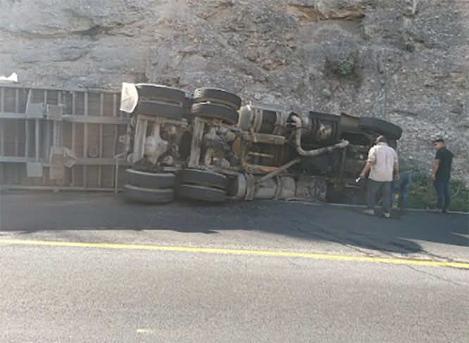 Tráiler sufre volcadura en carretera federal Azumbilla-El Seco