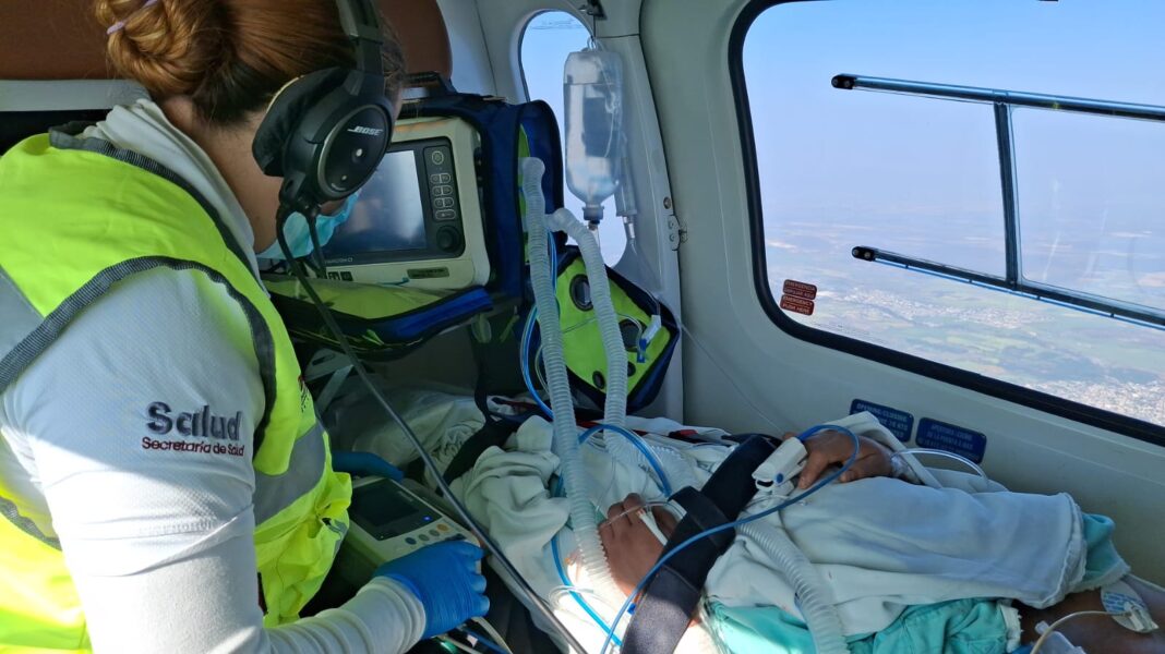 El operativo se realizó mediante el Sistema de Urgencias Médicas Avanzadas (SUMA), que utilizó un helicóptero como ambulancia aérea para garantizar un traslado oportuno y seguro, bajo supervisión médica durante todo el trayecto.