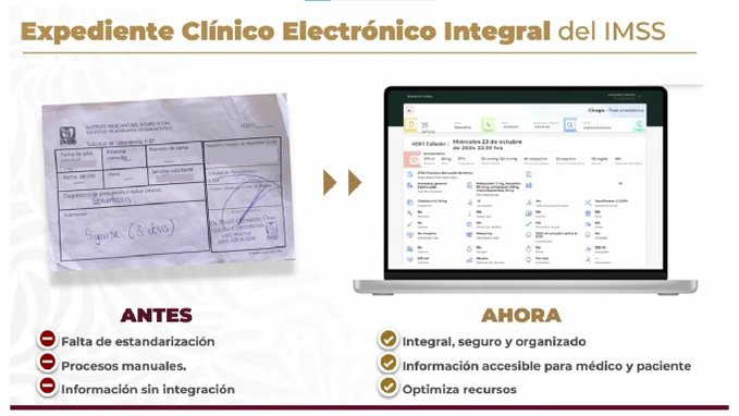 Con el nuevo sistema de expediente clínico electrónico del IMSS, toda la información médica de los pacientes se almacena y gestiona de manera segura y organizada, permitiendo un acceso integral a los últimos siete años de su historial clínico. Este avance facilita la continuidad en la atención médica y mejora la eficiencia en la prestación de servicios de salud, beneficiando tanto a pacientes como a personal médico.
