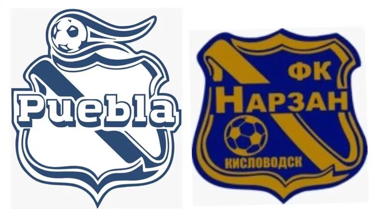 El emblema del Club Puebla ha sido comparado directamente con el del Narzan Kislovodsk, un equipo que toma su nombre de una famosa agua mineral. El logo del equipo ruso presenta una notable similitud con los históricos escudos del conjunto mexicano, compartiendo elementos como la franja característica, un balón en su interior y la forma general de la figura. La diferencia más evidente radica en la paleta de colores utilizada.