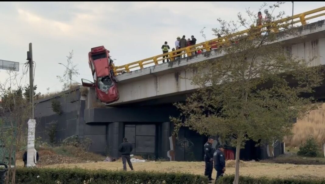 La magnitud del impacto provocó que uno de los automóviles quedara parcialmente suspendido sobre el puente, lo que generó alarma entre automovilistas que transitaban por la zona.