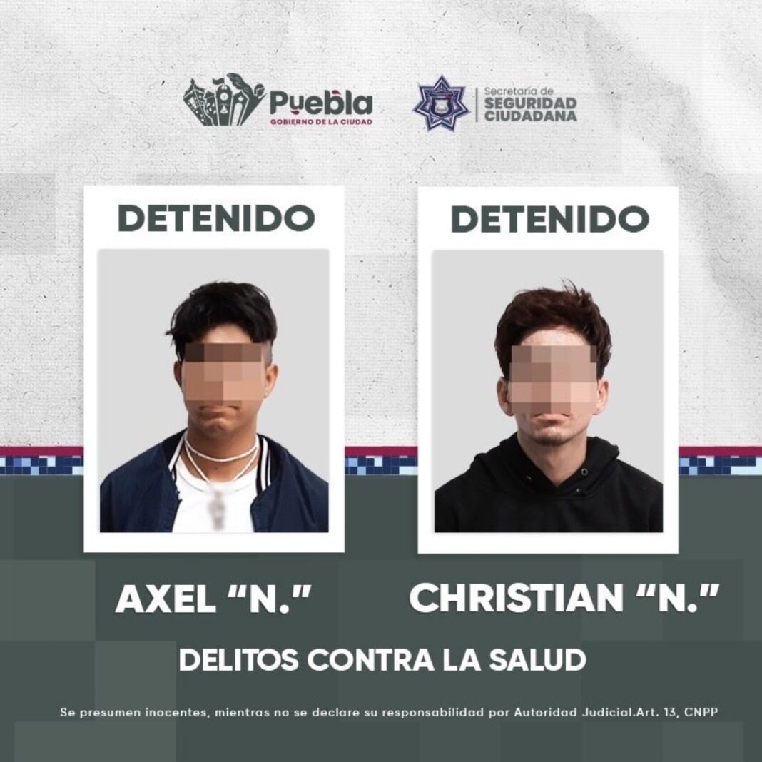 Los hechos ocurrieron en la zona norte de la capital poblana, donde ambos individuos fueron detenidos en posesión de aparente sustancia ilícita.