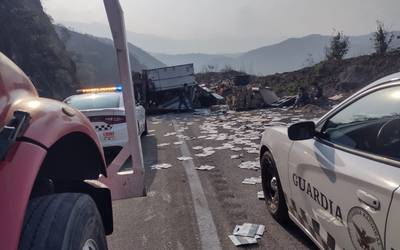 Maltrata, Ver.- Un hombre y una mujer sobrevivieron a un accidente la tarde del miércoles en la autopista Puebla-Veracruz, tramo Acatzingo-Ciudad Mendoza, cuando la caja seca de un tractocamión volcó sobre el vehículo en el que viajaban, a la altura del kilómetro 244.